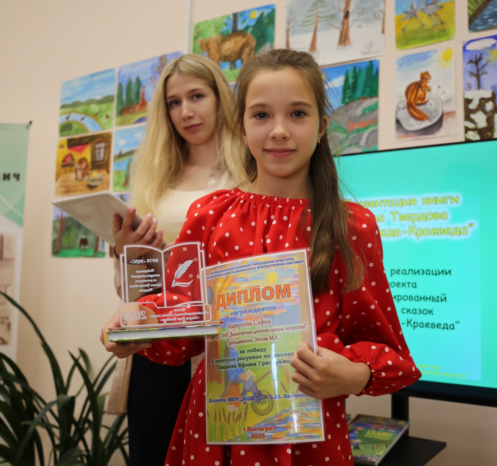 София Маркушева воспитанница Вытегорской детской школы искусств награждена за победу в конкурсе рисунков по рассказам Ефима Твердова.