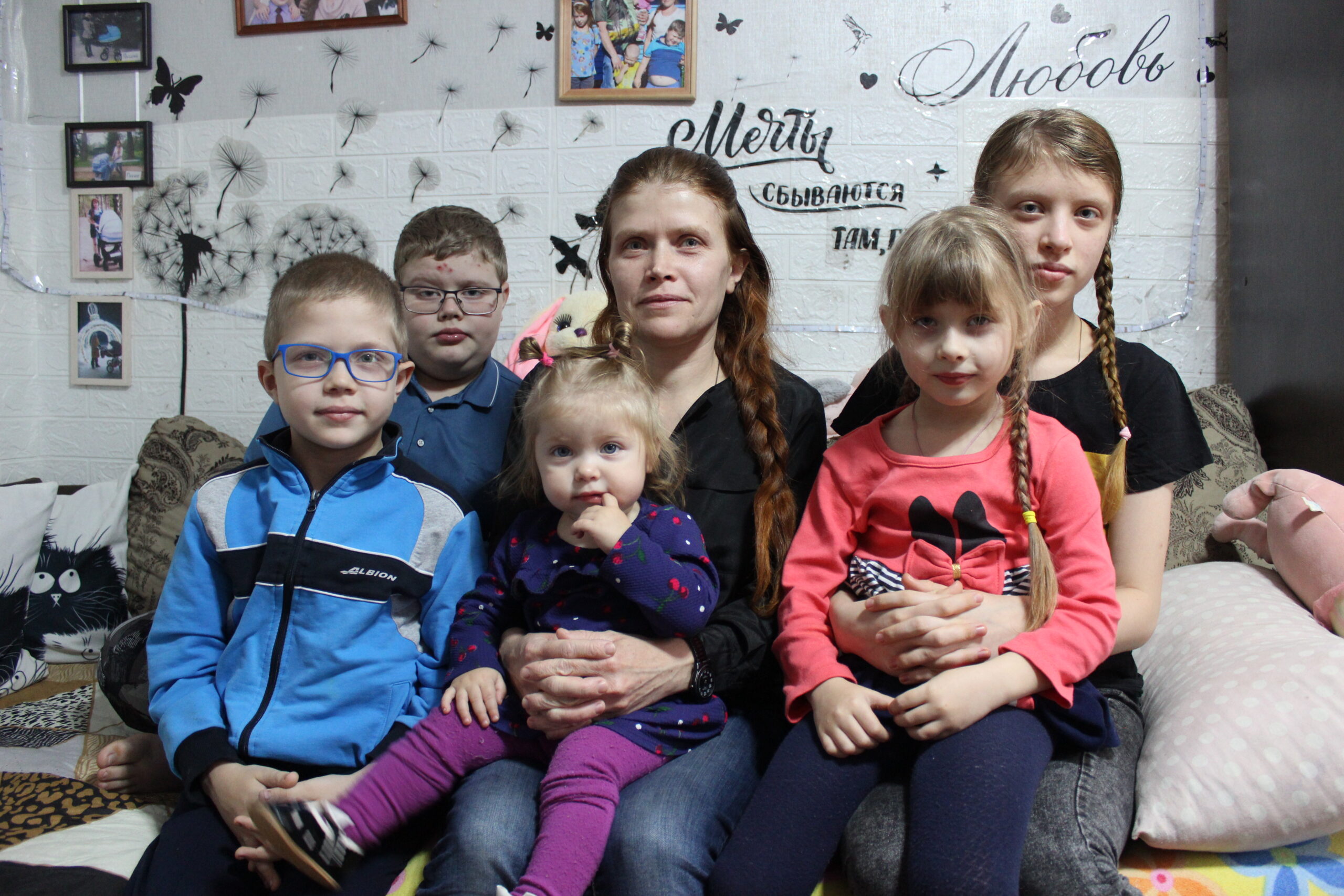 Дмитрий, уроженец Белого Ручья, возил на УАЗике рабочих в Мегру. Здесь заприметил рыжеволосую красавицу, познакомились. Это было в январе 2008 года, в марте сыграли свадьбу, в декабре родилась Полина – первая дочь. Сначала супруги о большой семье и не думали, но друг за другом на свет появились Григорий, Прохор, Анфиса. «Так, видно, Богу угодно», — уверены были родители. Жизнь наполнилась обычными хлопотами, новыми планами, появилась и мечта – построить дом. Семья успела получить земельный участок. Но всё разрушила внезапная болезнь мужа. Инсульт не пощадил главу семьи, оставив Екатерину одну с четырьмя детьми и пятой, еще не родившейся, дочкой под сердцем.