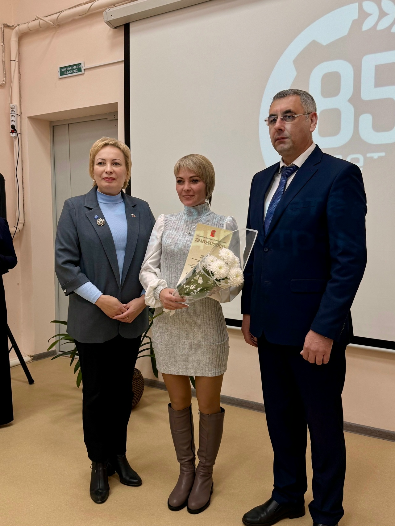Депутат ЗСО Антонина Федорова Благодарственным письмом Законодательного собрания Вологодской области наградила преподавателя Вытегорского техникума Татьяну Гахраманову.