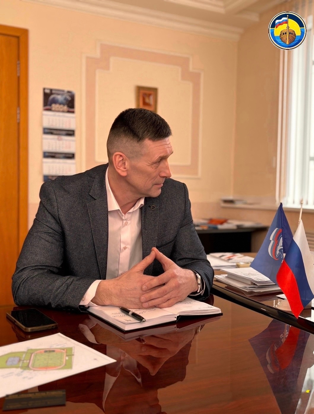 Глава Вытегорского муниципального округа Иван Абрамов провел рабочую встречу с подрядной организацией, планирующей в этом году выполнить работы по строительству стадиона в г. Вытегра (2 этап).
