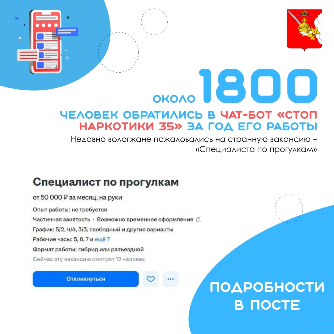 В чат-бот «Стоп наркотики 35» жители региона могут передать информацию, связанную с распространением наркотиков: